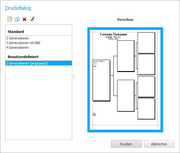 Es ist möglich im Druckdialog eigene Vorlagen für Ausdrucke zu erstellen.