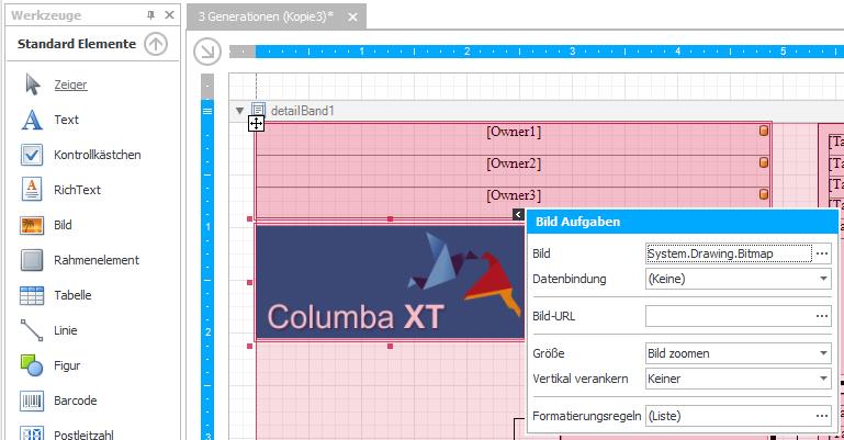 - Anschließend das Bild-Objekt positionieren und Speichern. Nun steht Ihnen der neue Ausdruck zur Verfügung