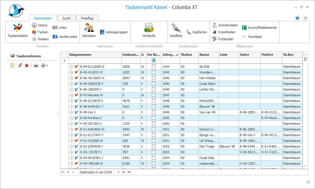 Im Bild unten sehen Sie, dass wir den Taubenstamm nach dem Jahrgang aufsteigend sortiert haben.