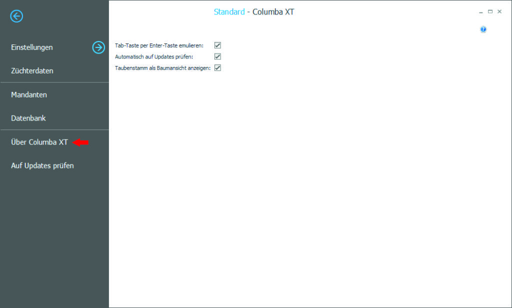 Klicken Sie nun auf den Eintrag "Über Columba XT".
