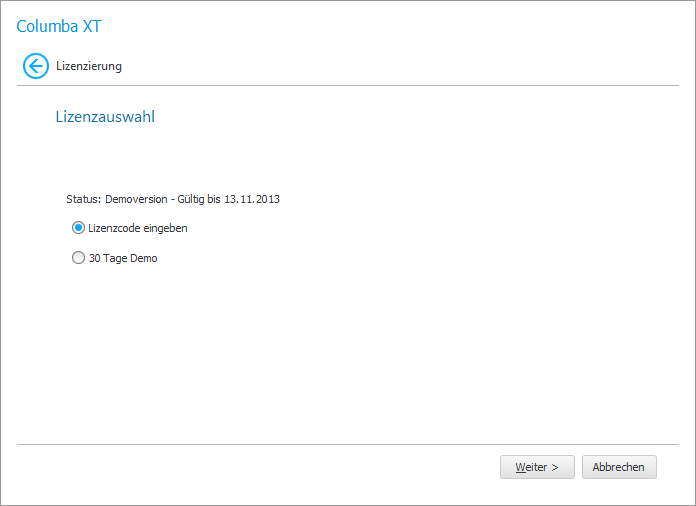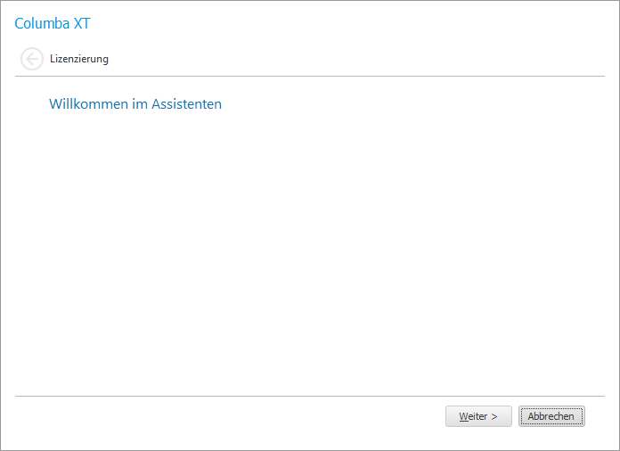 Bestätigen Sie den Lizenzierungsassistenten mit "Weiter".