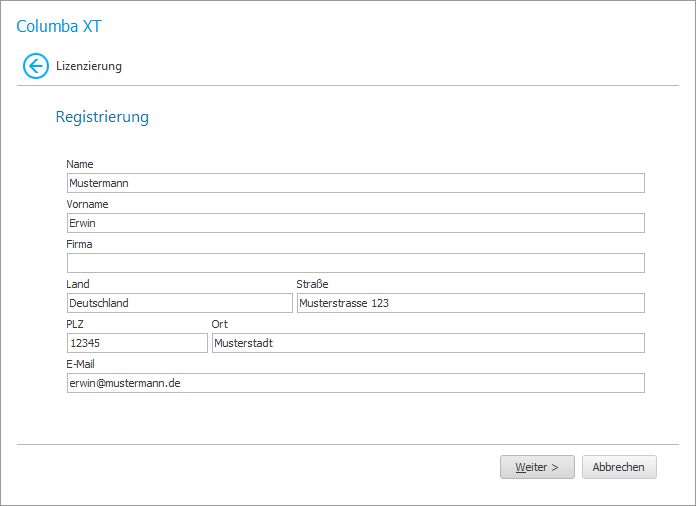 Geben Sie im folgenden Fenster Ihre Kontaktdaten ein.