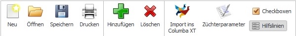 - Mit 'Züchterparameter' können Sie sich anschauen mit welchen Züchterparametern der Stammbaum abgespeichert wird, bzw. falls das Dokument aus einer Datei geladen wurde, mit welchen Parametern dieses gespeichert wurde.
