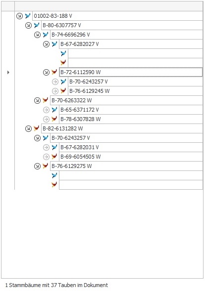 In der Stammbaumansicht werden alle momentan im Stammbaum eingetragenen Tauben aufgelistet.